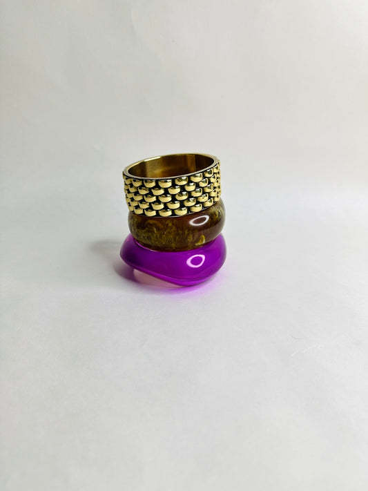Aroha Resin,Brass & Wood Bangles-Set of 4