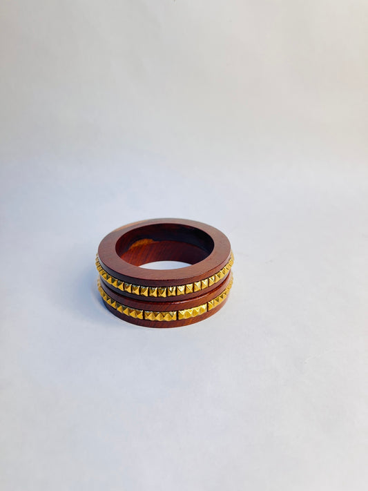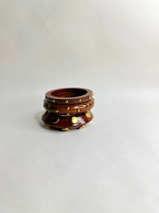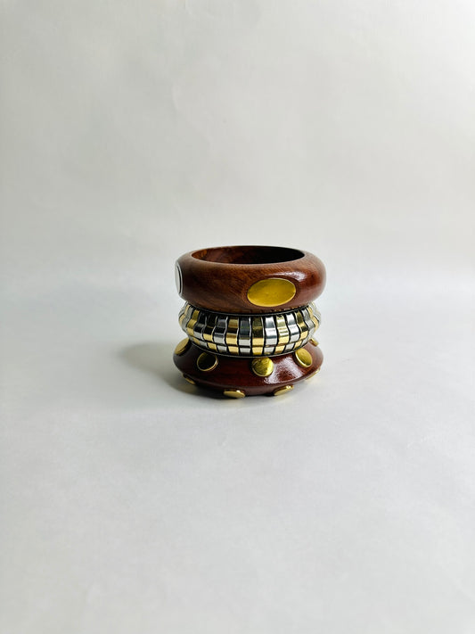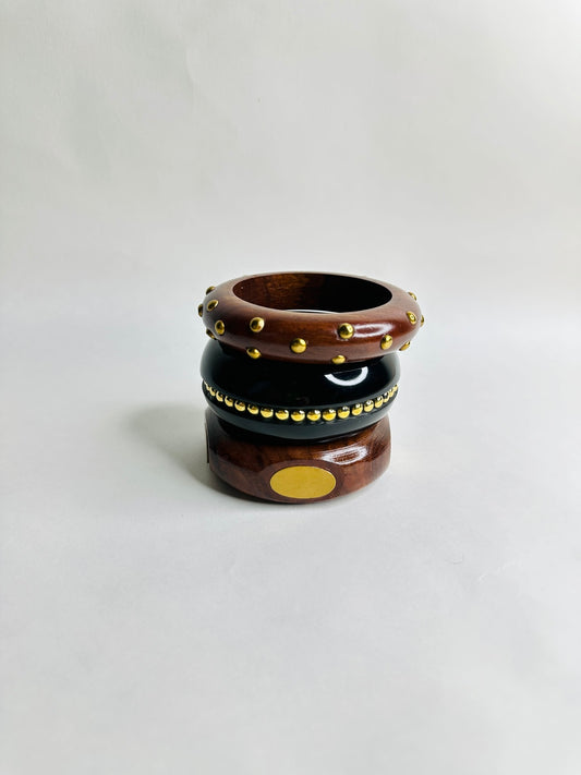 Tashan Wooden & Brass Bangles-Set of 3