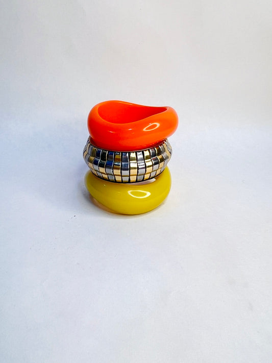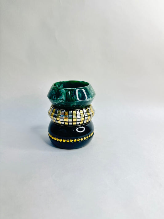 Disco Resin & Brass Bangles-Set of 3