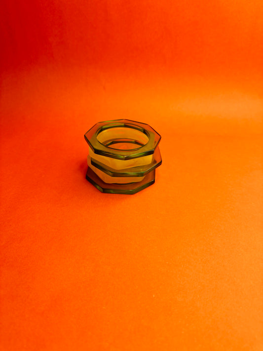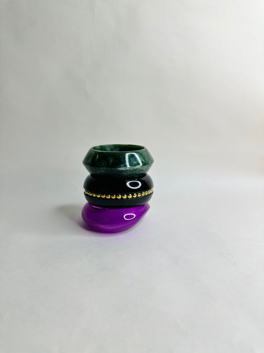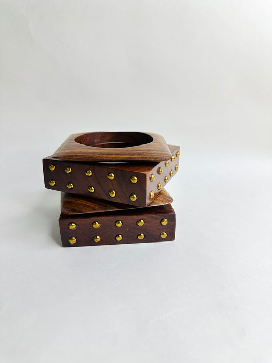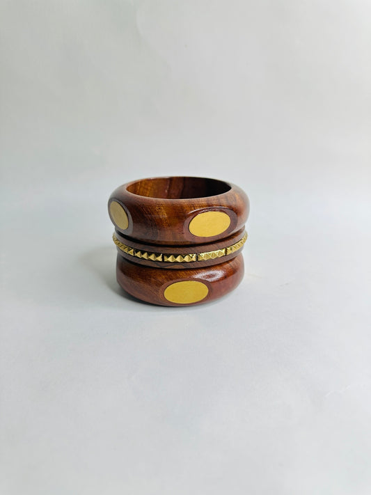 Tuffle Resin,Brass & Wood Bangles-Set of 3