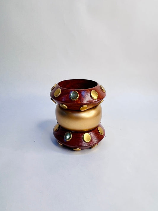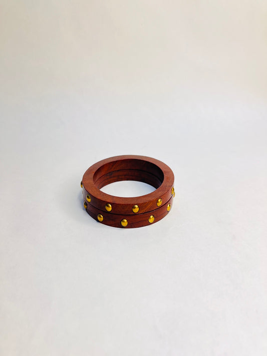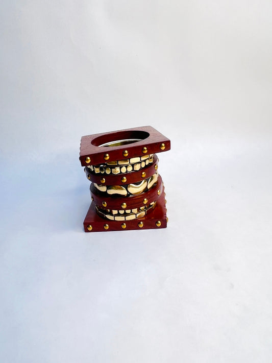 Choco Crunch Wooden & Brass Bangles-Set of 2