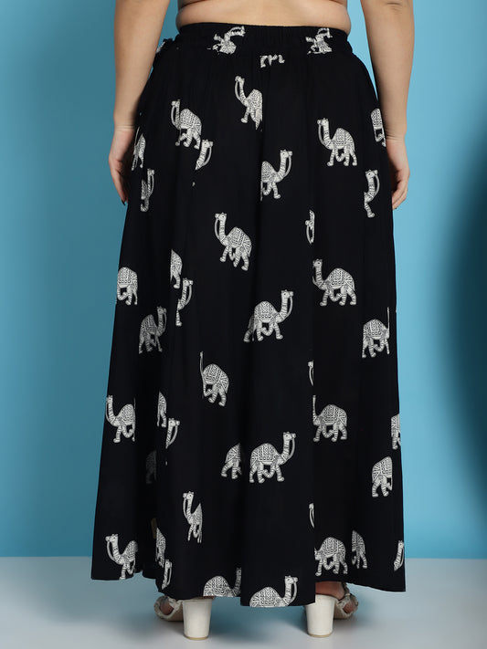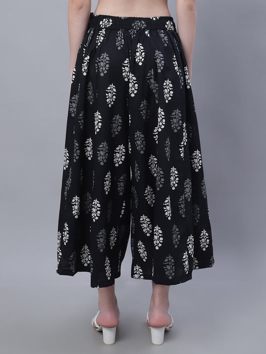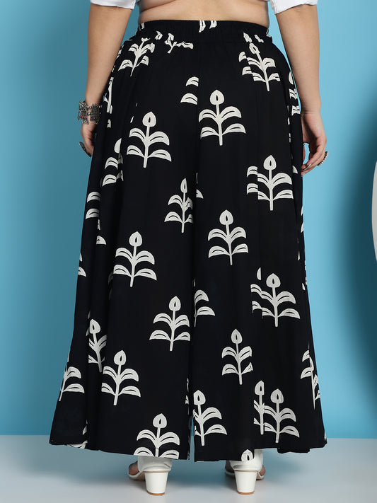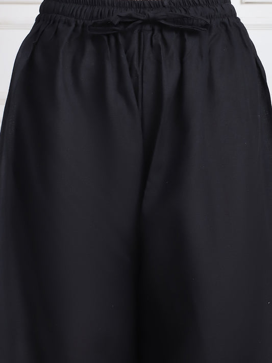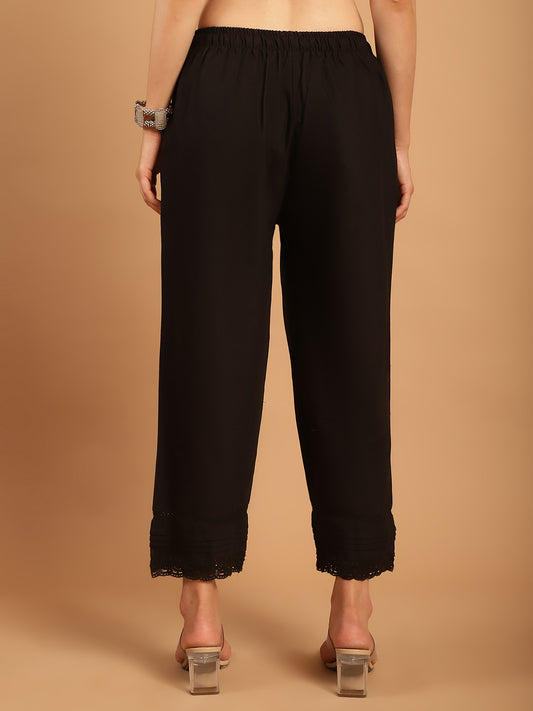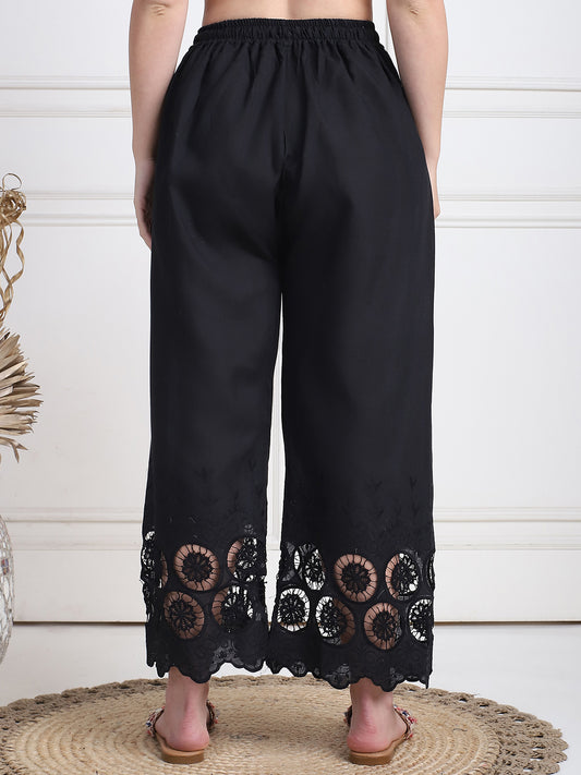 Black Crotchet Lace Pintex Hem Design Cotton Flax Palazzo