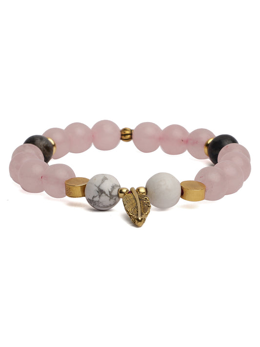 Combo Of Rose Quartz ,Lawa And Amazonite Semi Precious Stone Bracelet