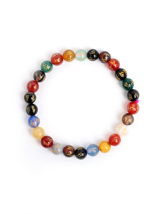 Combo Of Lawa ,Seven Chakra And Om Mani Multi Semi Precious Stone Bracelet