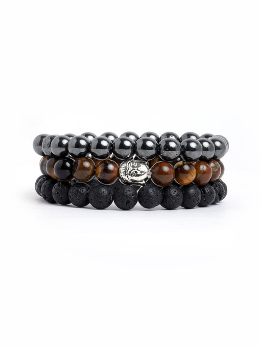 Combo Of Lawa Rudraksh ,Hemetite And Tiger Eye Semi Precious Stone Bracelet