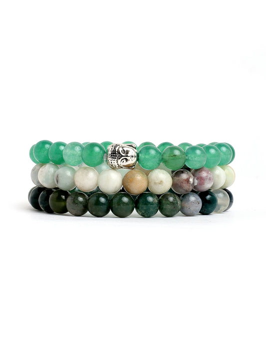 Combo Of Mos Agate ,Green Aventurine And Amazonite Semi Precious Stone Bracelet