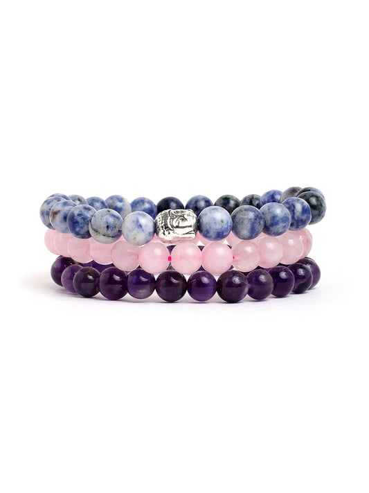 Combo Of Rose Quartz ,Amethyst And Sodolite Semi Precious Stone Bracelet