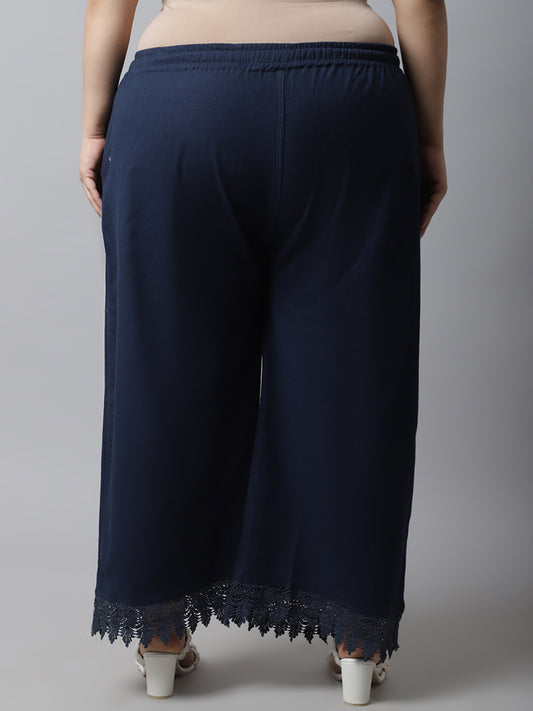 Navy Blue Crotchet Lace Cotton Flax Plus Palazzo