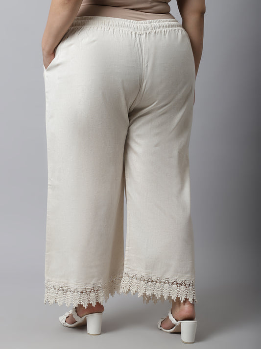 Cream Crotchet Lace Cotton Flax Plus Palazzo