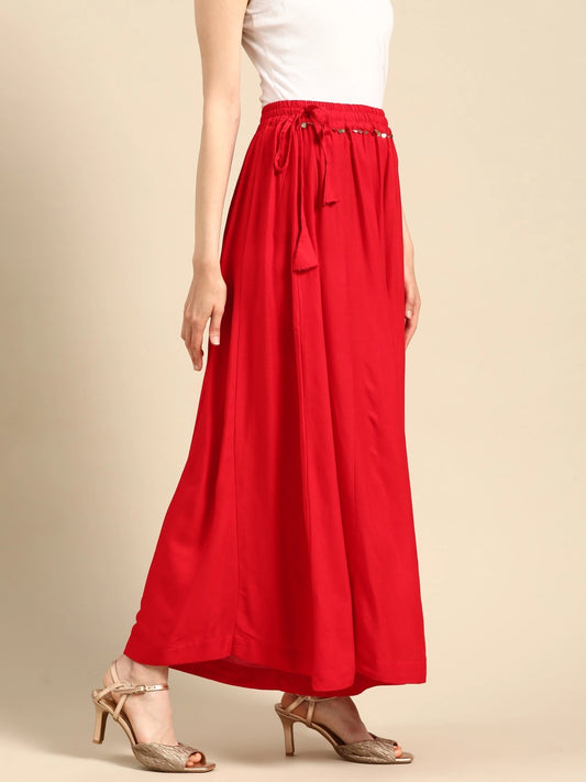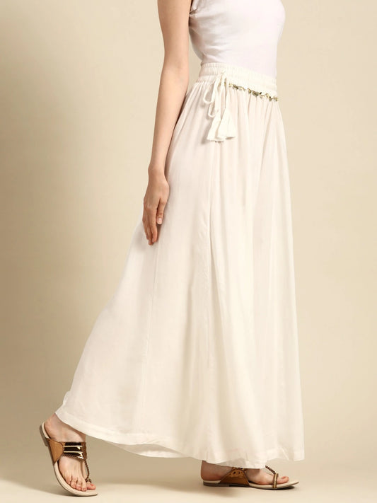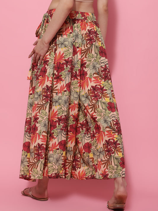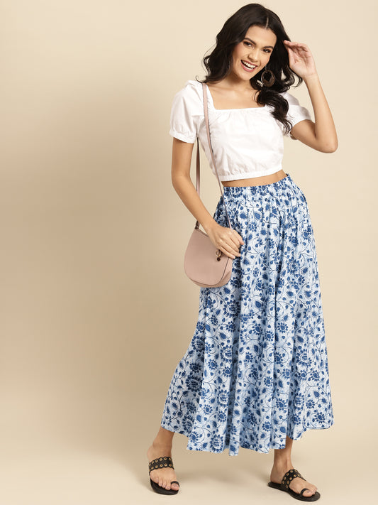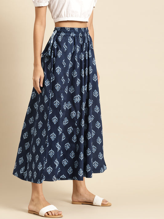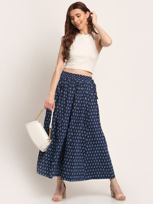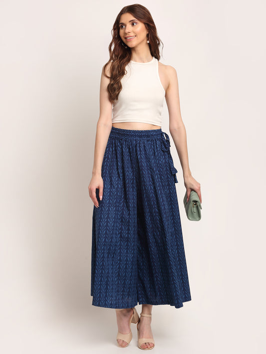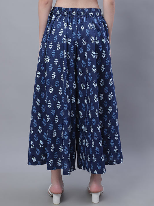 Indigo Blue Leaf Cotton Print Flared Palazzo