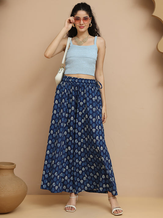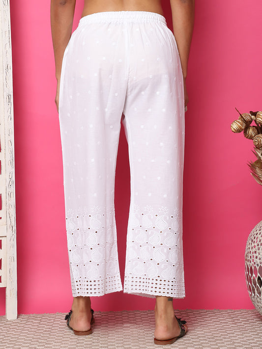 White Crotchet Lace Pintex Hem Design Cotton Flax Palazzo