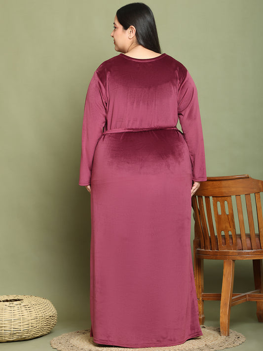 Wine Embroidery Velvet Night Dress