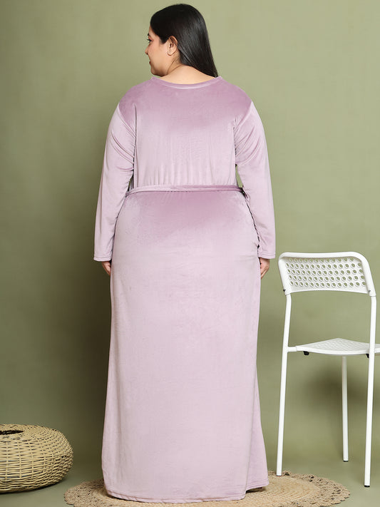 Lavender Embroidery Velvet Night Dress