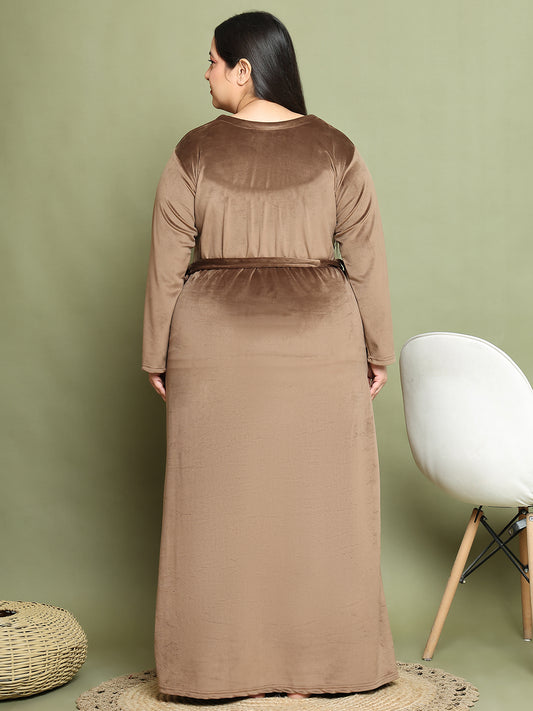 Brown Embroidery Velvet Night Dress