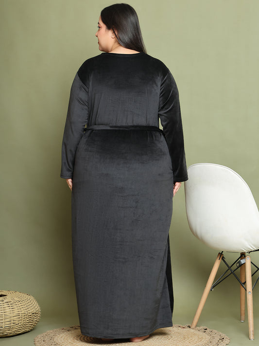 Black Embroidery Velvet Night Dress