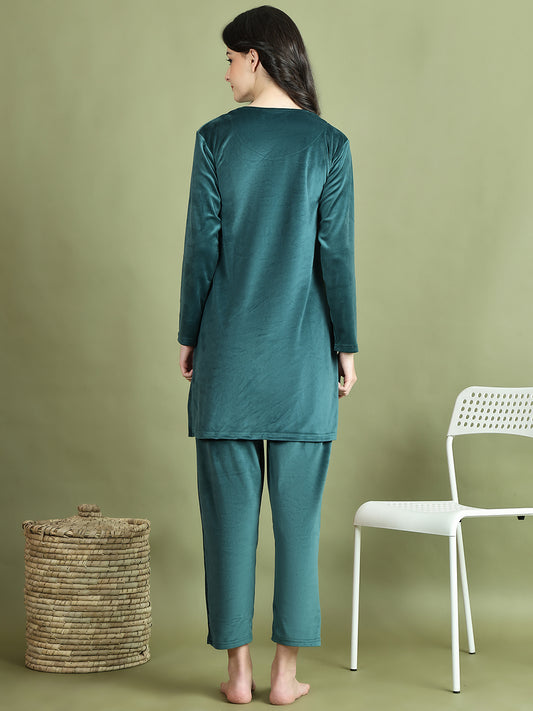 Bottle Green Embroidery Velvet Lounge Set