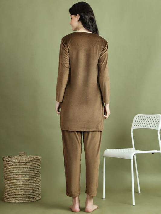 Brown Embroidery Velvet Lounge Set