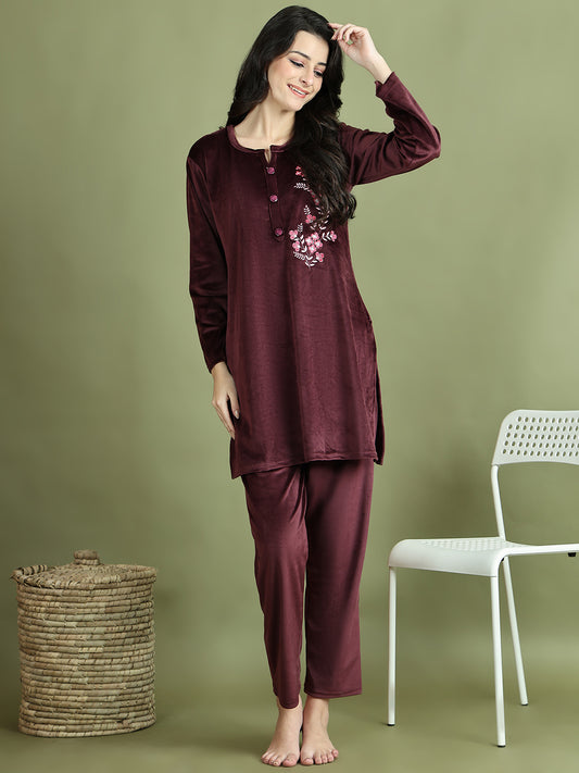 Sold outWine Embroidery Velvet Lounge Set