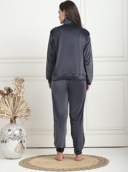Dark Grey Velvet Zip Lounge Set