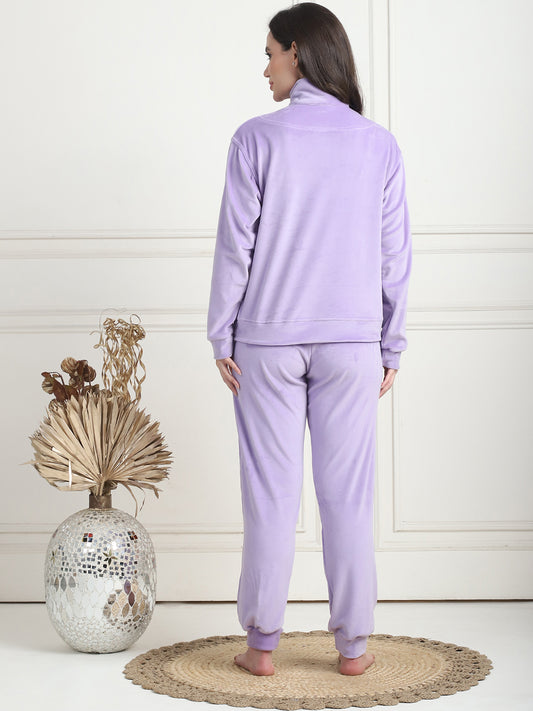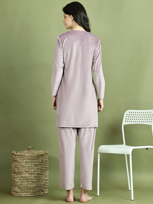 Lavender Embroidery Velvet Lounge Set