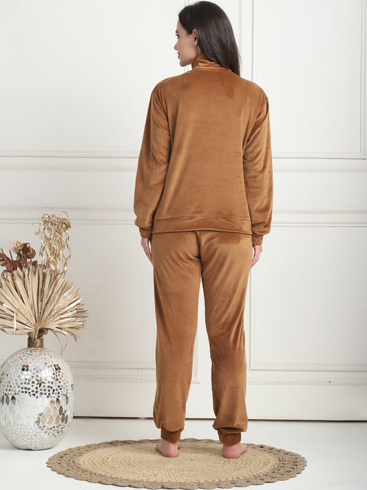 Camel Brown Velvet Zip Lounge Set