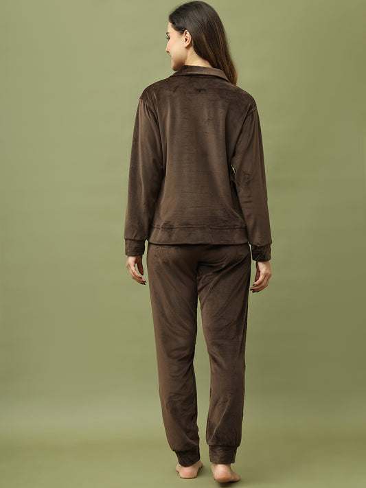 Brown Velvet Zip Lounge Set