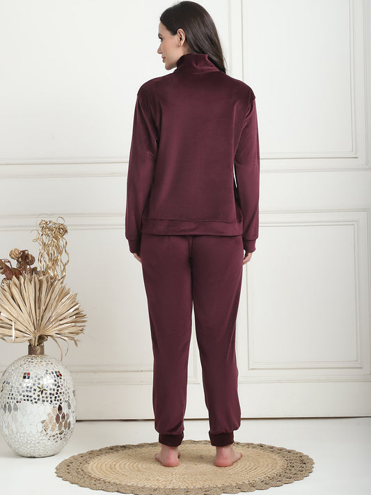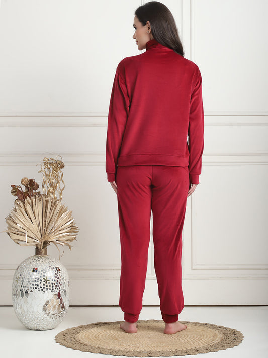 Maroon Velvet Zip Lounge Set