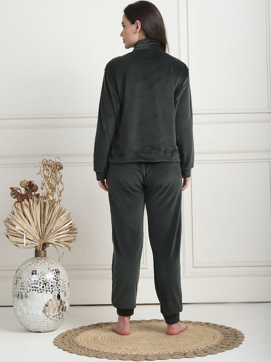 Bottle Green Velvet Zip Lounge Set