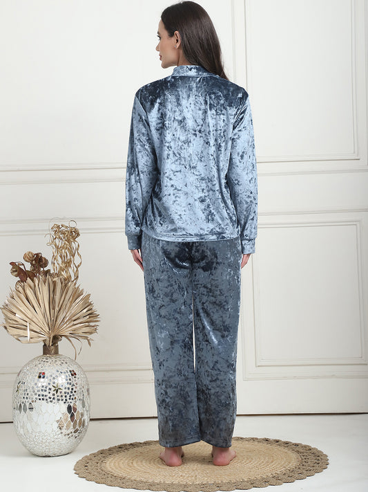 Metallic Blue Ice Velvet Lounge Set