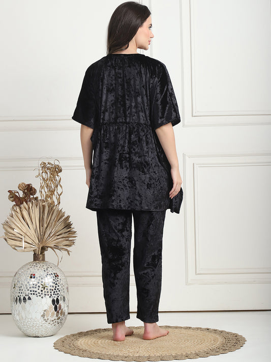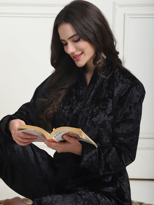 Metallic Black Ice Velvet Kaftan Lounge Set