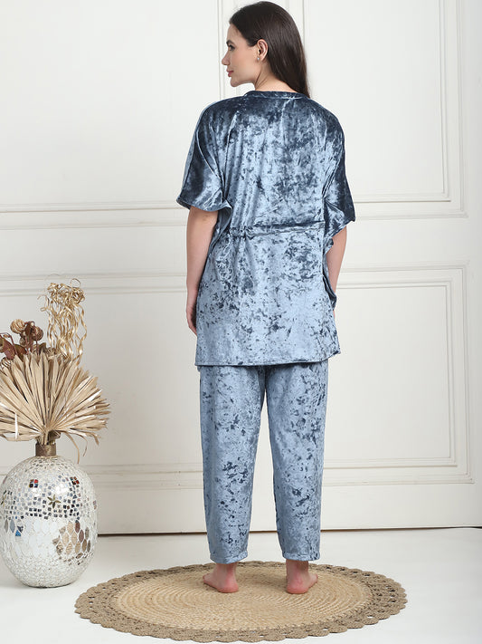 Metallic Blue Ice Velvet Kaftan Lounge Set