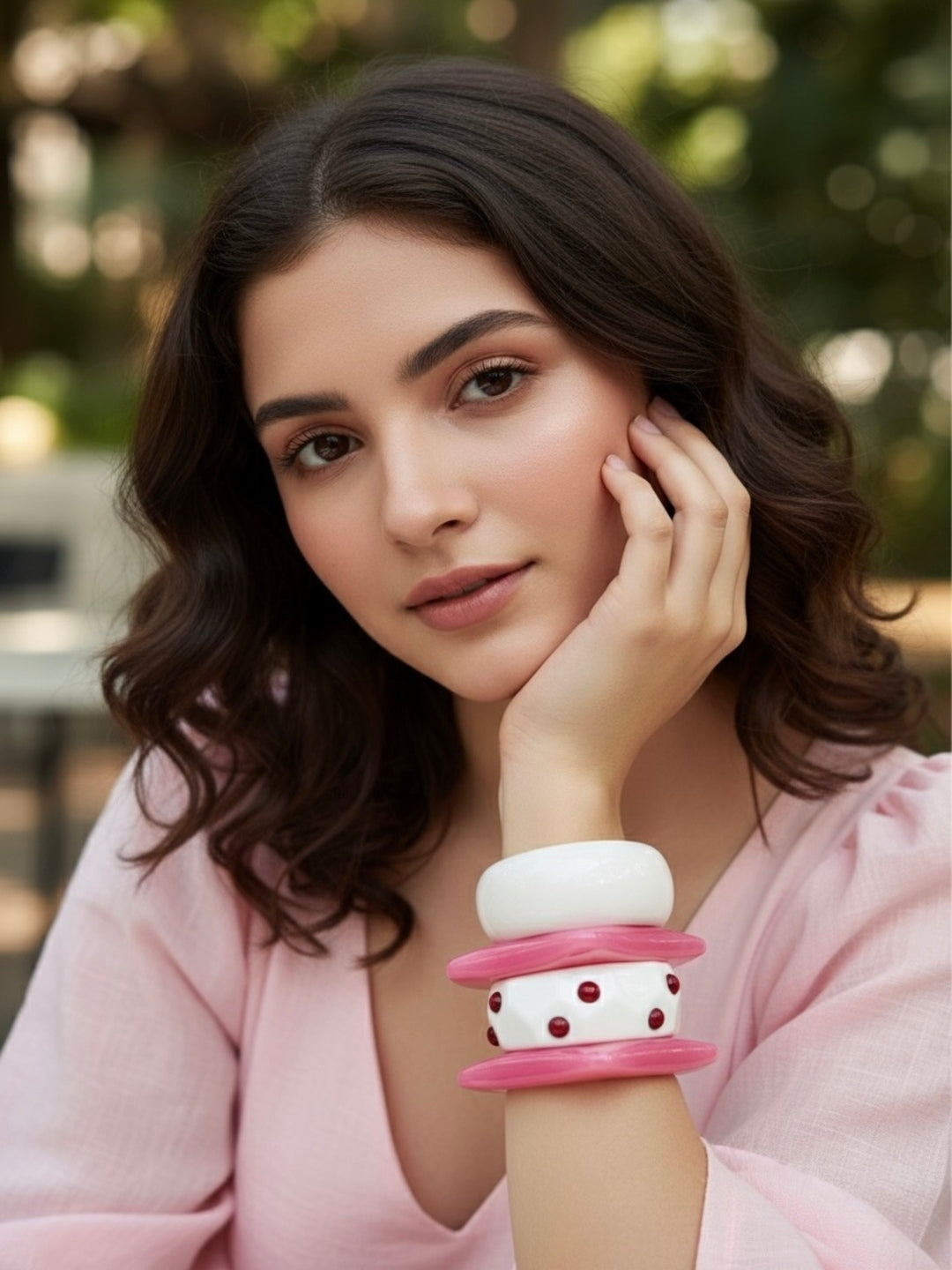 Description: Our resin bangles are lightweight, durable, and designed to add a playful yet chic touch to your look. Each piece is hand-poured and polished for a smooth finish, making it both stylish and comfortable to wear all day. Perfect for stacking or wearing solo, these bangles bring a modern, artsy vibe to any outfit.
