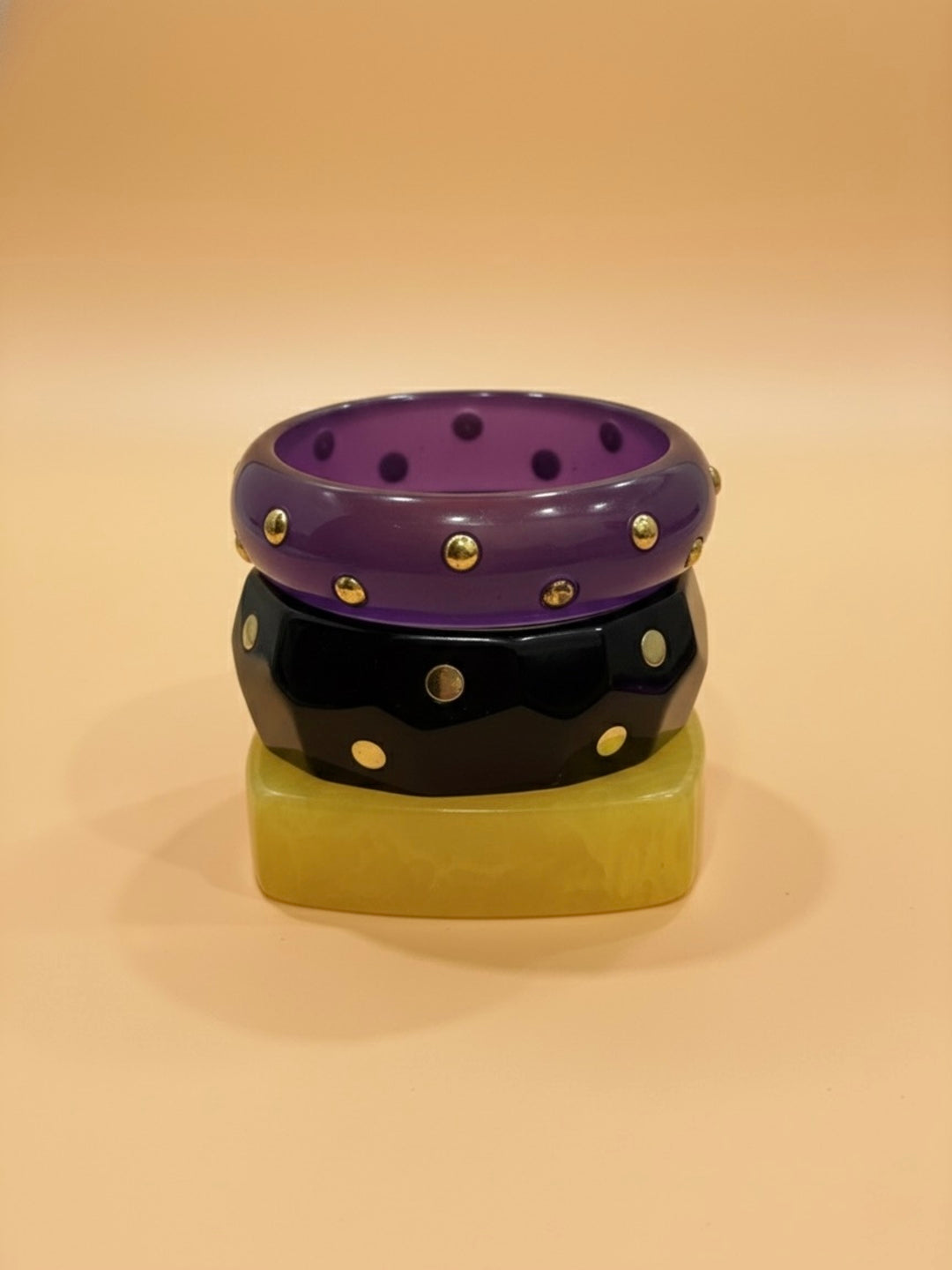 Description: Our resin bangles are lightweight, durable, and designed to add a playful yet chic touch to your look. Each piece is hand-poured and polished for a smooth finish, making it both stylish and comfortable to wear all day. Perfect for stacking or wearing solo, these bangles bring a modern, artsy vibe to any outfit.