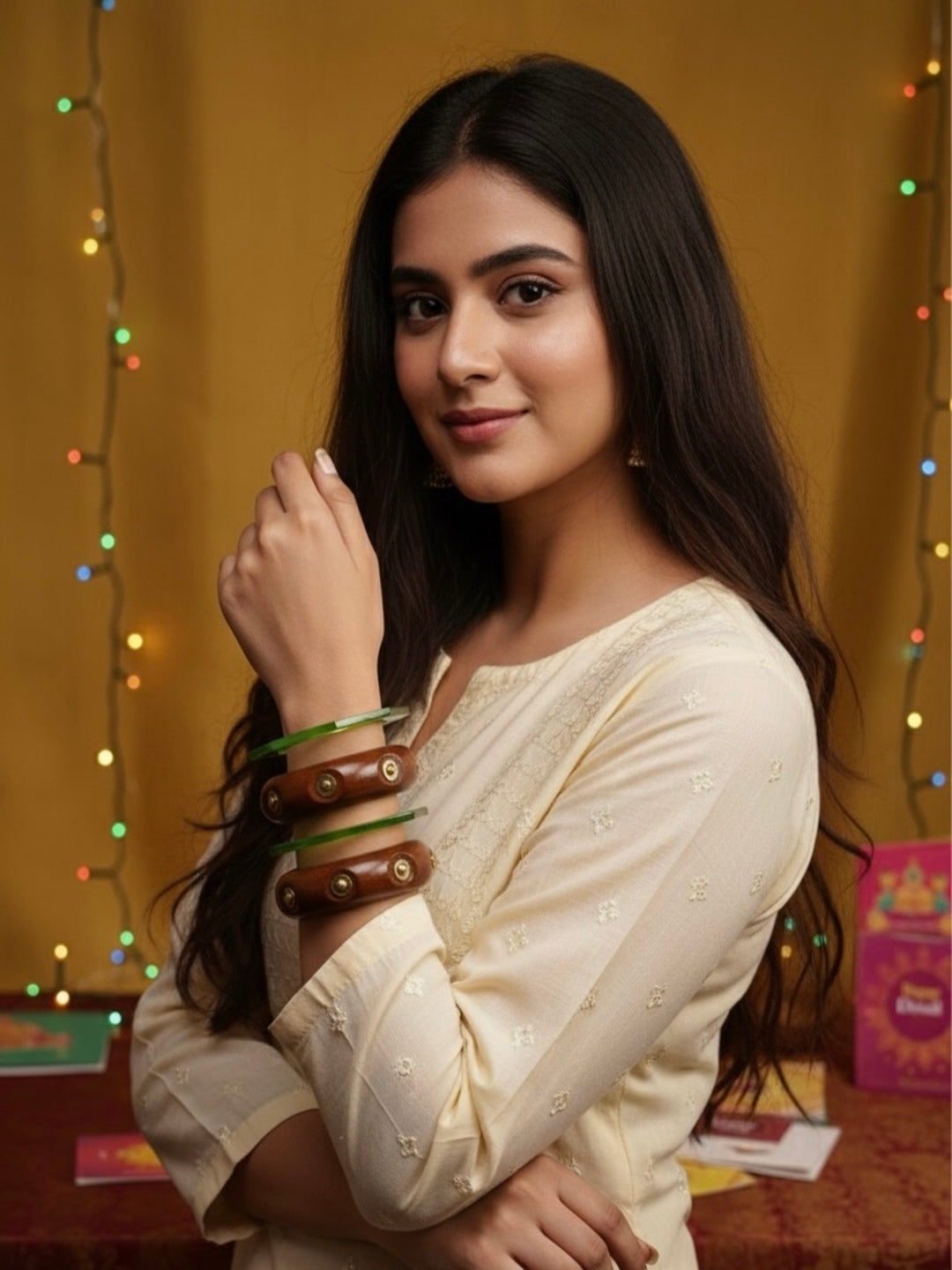 Description: Our Wooden & resin bangles are lightweight, durable, and designed to add a playful yet chic touch to your look. Every bangle is a little piece of art. With marble-like swirls flowing through the resin, each one is unique in its pattern and color play. Crafted from premium quality Sheesham wood, this bangle is smooth, classic and timeless.