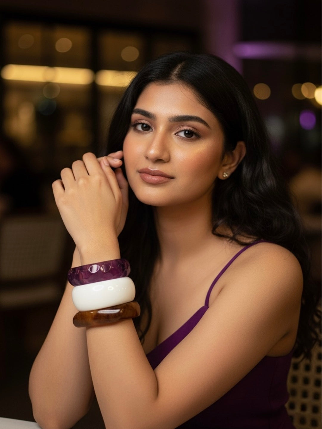 Description: Our resin bangles are lightweight, durable, and designed to add a playful yet chic touch to your look. Each piece is hand-poured and polished for a smooth finish, making it both stylish and comfortable to wear all day. Perfect for stacking or wearing solo, these bangles bring a modern, artsy vibe to any outfit.