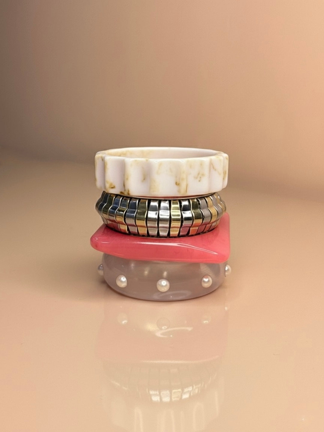 Description: Our resin bangles are lightweight, durable, and designed to add a playful yet chic touch to your look. Each piece is hand-poured and polished for a smooth finish, making it both stylish and comfortable to wear all day. Perfect for stacking or wearing solo, these bangles bring a modern, artsy vibe to any outfit.
