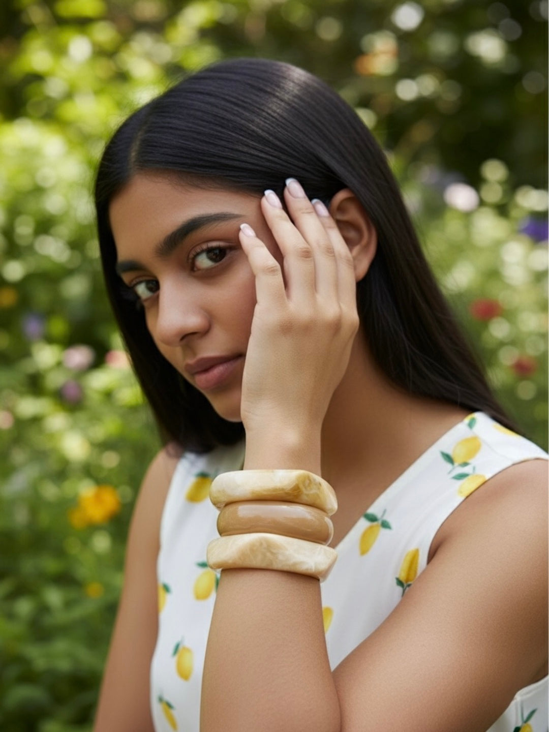 Description: Our resin bangles are lightweight, durable, and designed to add a playful yet chic touch to your look. Each piece is hand-poured and polished for a smooth finish, making it both stylish and comfortable to wear all day. Perfect for stacking or wearing solo, these bangles bring a modern, artsy vibe to any outfit.